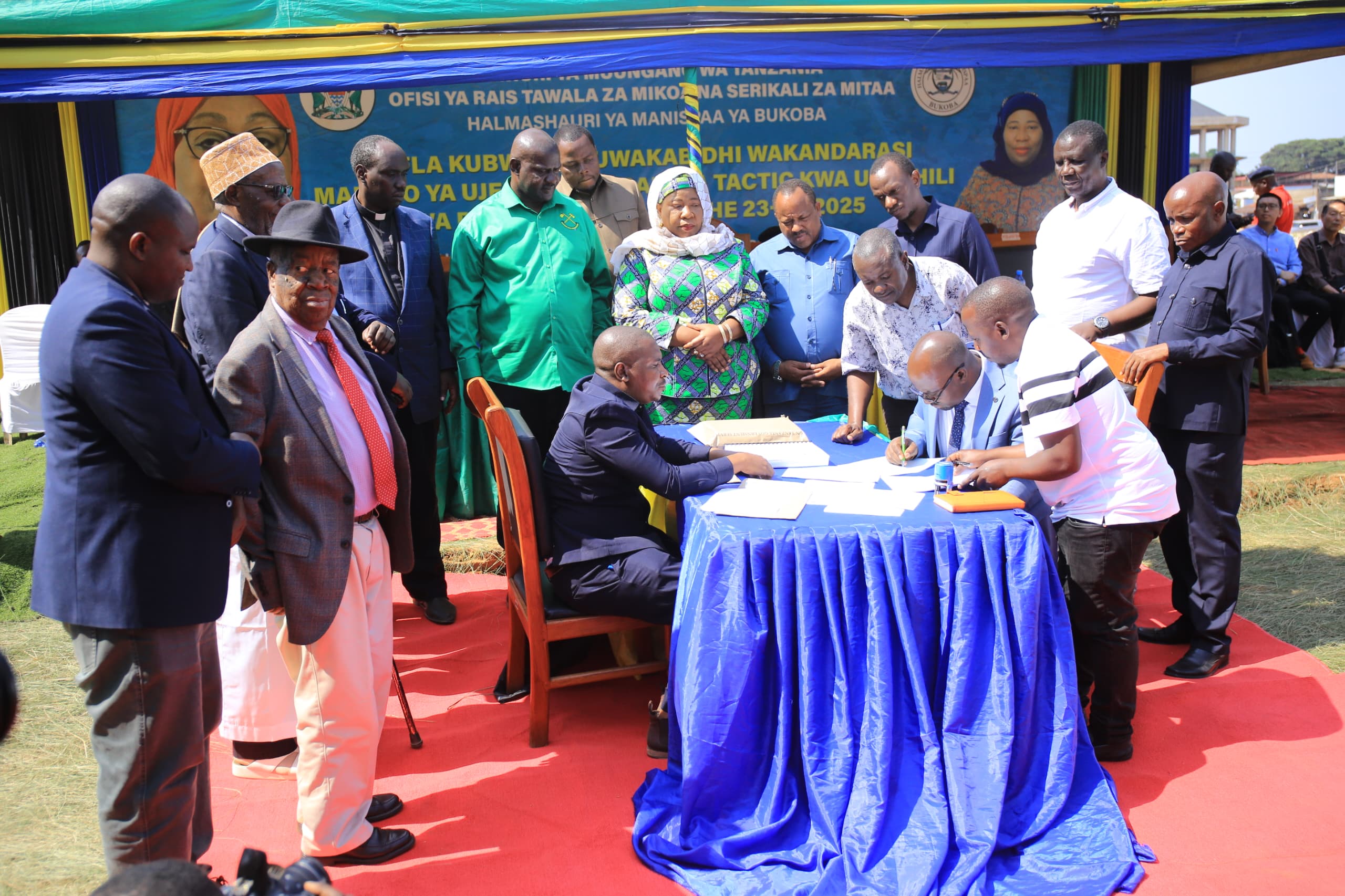 Byabato ameyaeleza hayo akiwahutubia wananchi katika hafla fupi ya kuwakabidhi mikataba ya kuanza ujenzi wakandarasi shughuli iliyofanyika eneo la soko kuu la zamani mjini Bukoba.